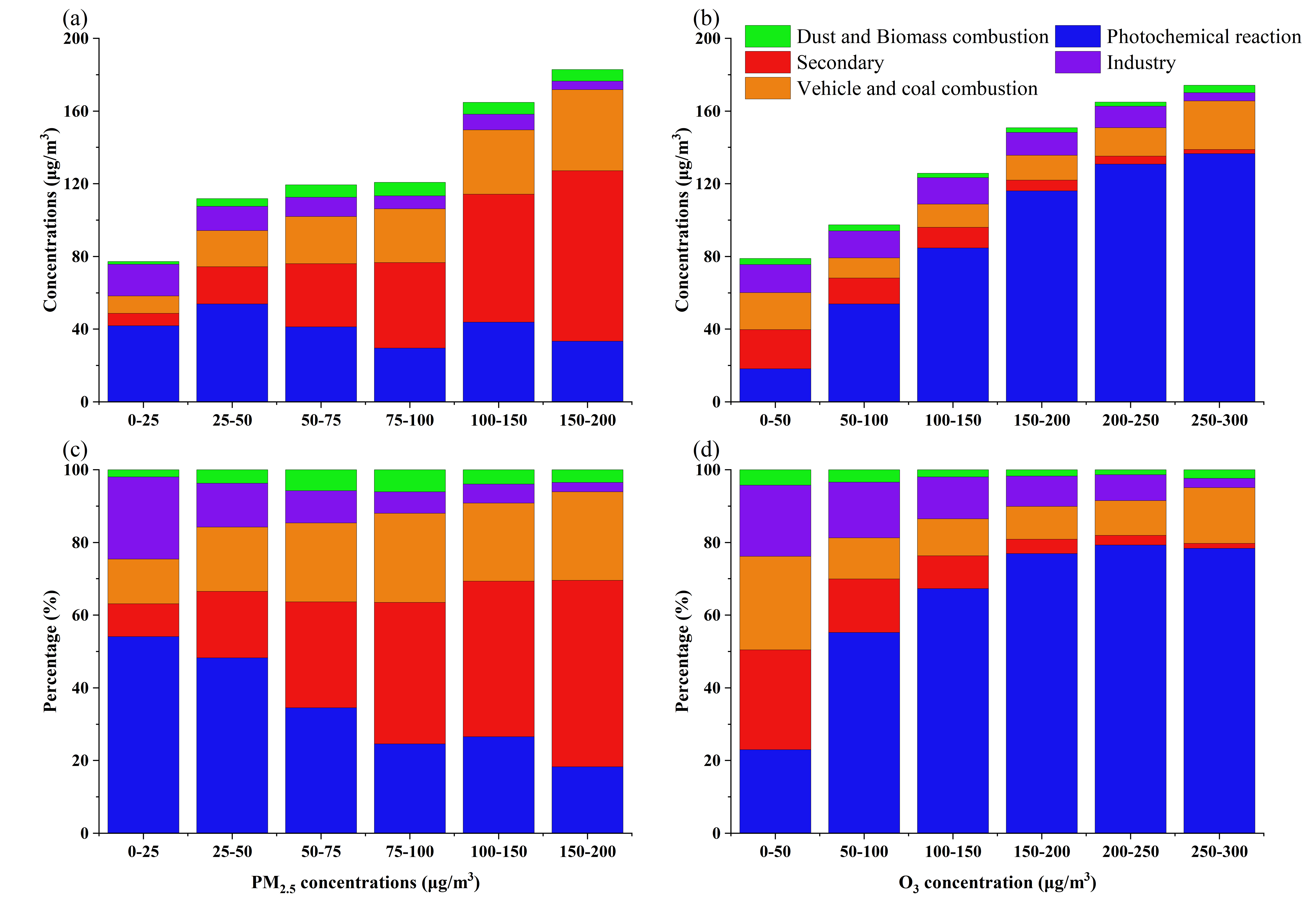 各污染源浓度及贡献度随PM2.5与O3的变化规律