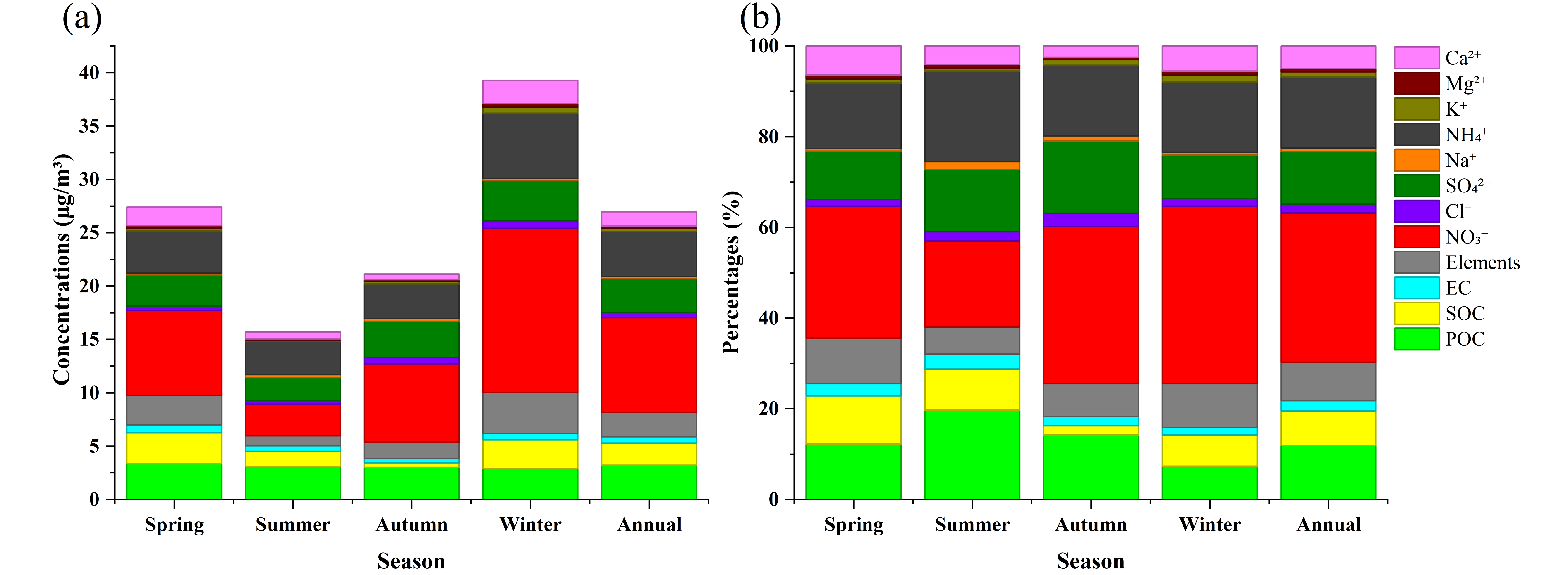 不同季节PM2.5化学组分变化特征